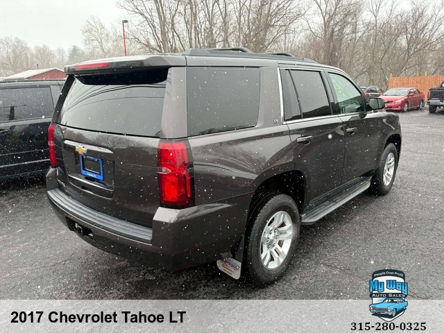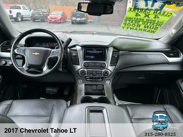 Introducing the 2017 Chevrolet Tahoe LT, a powerhouse of an SUV ready to take on any adventure you throw its way. With a sleek body style and powerful 5. 3L V8 engine, this truck is built to impress. Cruise in comfort with heated leather seats, navigation system, premium sound, and more features that will make every drive enjoyable. Safety is a top priority with airbags all around and anti-lock brakes for added peace of mind. Don't miss out on the opportunity to own this incredible vehicle today! Whether you're hitting the road for a family vacation or just need a reliable daily driver, the Chevy Tahoe has got you covered. Take command of the road in style with this versatile and spacious SUV. Upgrade your driving experience now with the 2017 Chevrolet Tahoe LT - it's more than just a vehicle, it's an experience waiting to be had. Rain Sensing Wipers, Interval Wipers, Electrochromic Interior Rearview Mirror, Daytime Running Lights, Cargo Area Tiedowns, Passenger Multi-Adjustable Power Seat, Front Power Lumbar Support, Telematics System, Subwoofer, AM/FM Radio, Trip Computer, Tire Pressure Monitor, Adjustable Foot Pedals, Telescopic Steering Column, Steering Wheel Mounted Controls, Leather Steering Wheel, Tachometer, Separate Driver/Front Passenger Climate Controls, Vehicle Stability Control System, Traction Control, Child Safety Door Locks4WD, Back up camera, No accidents, GPS system, Looks & runs great, Must see, Performance tires, Power everything, Runs drives great, Satellite radio, Financing options available, First time buyer's program available , Call George 3, One, 5-4, One, 5, Five, 0, Six, 1, Call Justin 3, One, 5-7, Nine, 5-7, Four, 4, Nine, Call Mechelle 3, One, 5-7, Six, 1 - Seven, 2 , Six, 9, Call Scott 3, One, 5-3, Four, 5, Five, 5, One, 9, View our inventory at www.mywayautocny.com